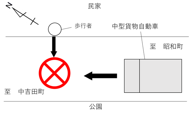 4月6日(月)、益田市乙吉町地内の市道において、中型貨物自動車が進行中、道路右側の民家側から横断してきた歩行者に衝突させる交通死亡事故が発生しました。