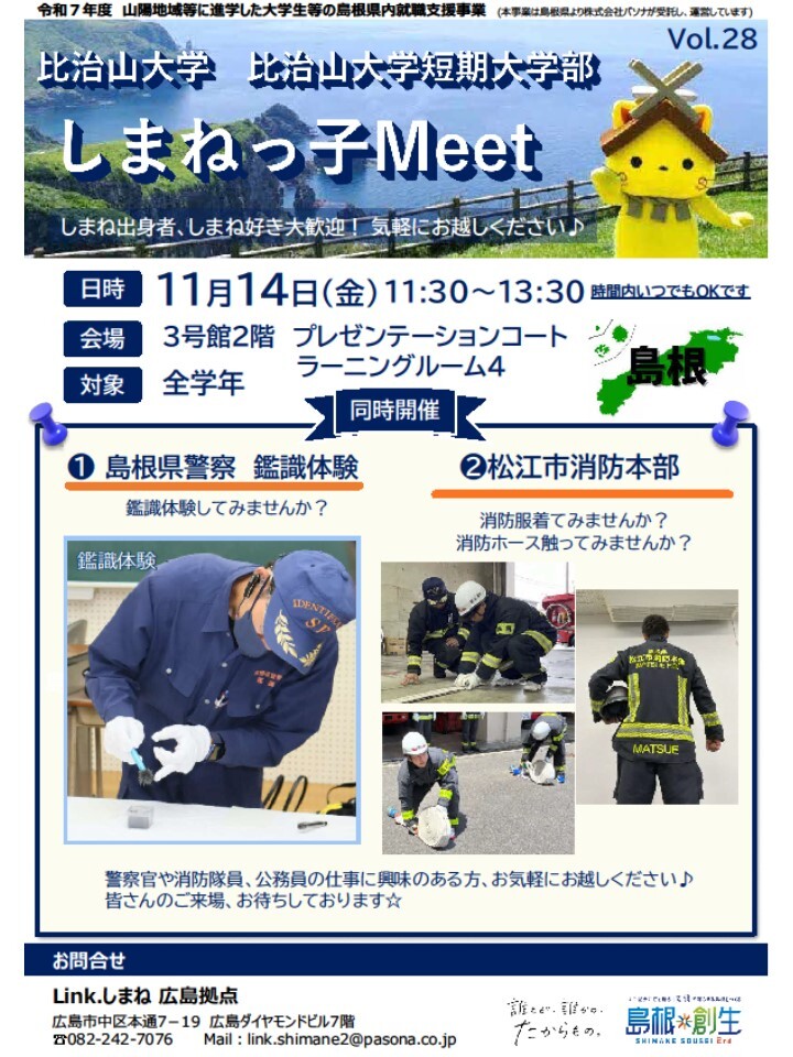 警察に興味のある方や鑑識体験をしてみたい方、島根県警察採用について気になることがある方など、たくさんの学生さんのご参加をお待ちしています!