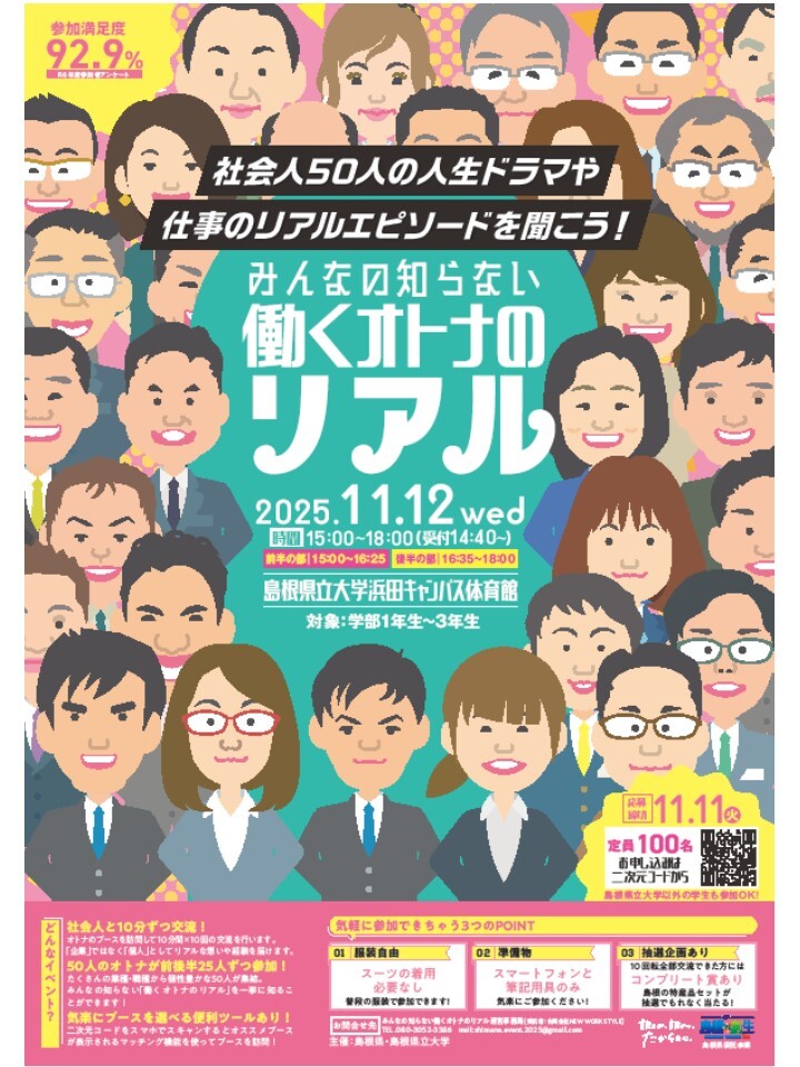 11月12日に、島根県立大学浜田キャンパスで行われる”みんなの知らない働くオトナのリアル”に参加します!(^^)!