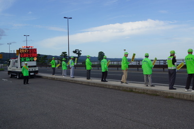 秋の全国交通安全運動期間にあわせて、松江市袖師町の宍道湖夕日スポット「とるぱ」付近の国道9号線において、