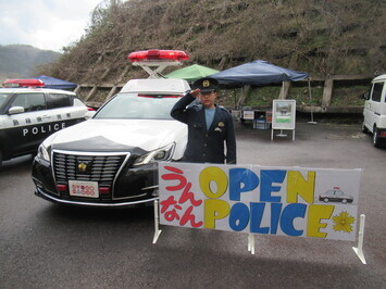3月7日、「尾原ダムクレストゲート放流イベント」においてミニオープンポリスを実施しました。車両の展示・撮影、制服着用体験、採用相談コーナーを開設し、警察の魅力発信及び警察官募集を行ったところ、多数の来場者の方に立ち寄っていただきました。